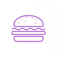 mit 125g Rindfleisch, Lollo Rosso Salat, Tomate, Zwiebeln, Gewürzgurken, Ketchup & Snack Dressing |